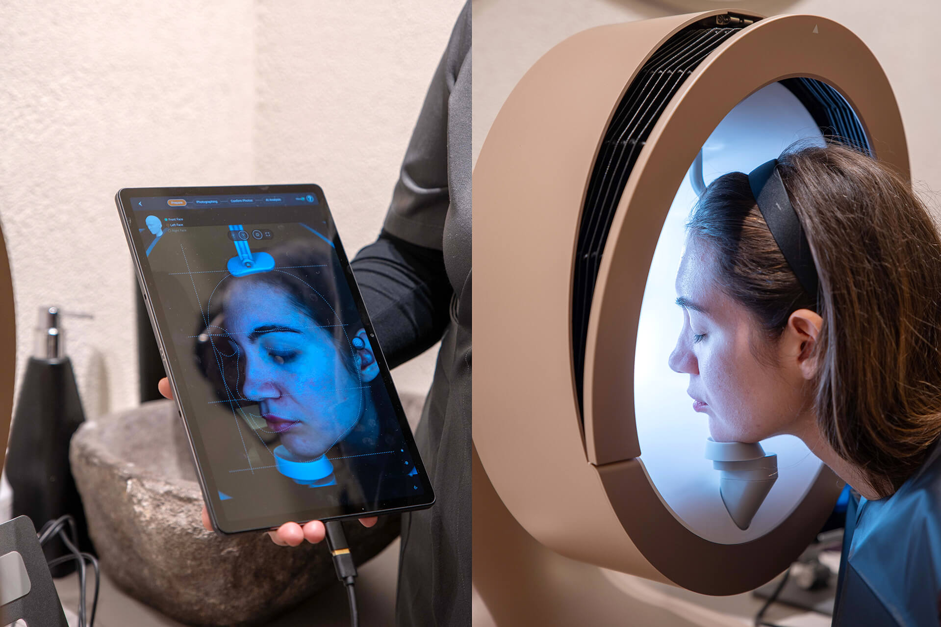 Με ειδικό μηχάνημα εξετάζουμε τον τύπο και τις ανάγκες της επιδερμίδας σου.